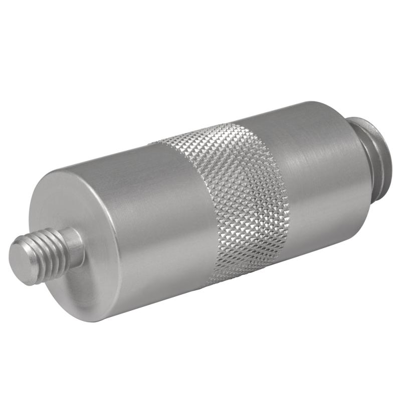 Aluminum adapter (72.5 mm) with 5/8" male thread and M8 male thread (10 mm). Ensures correct height alignment of XXL reference spheres (Ø200 mm) on prism poles. Designed to match prism pole scale, providing precise center height indication. Delivery: 1 adapter.