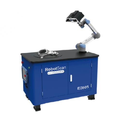 Shining 3D RobotScan E0505 is an automated 3D scanning system built on a robotic arm and optical scanner. It enables high-precision 3D models without manual intervention, ensuring stability and repeatability. Used for quality inspection, part verification, reverse engineering, and integration into production lines.