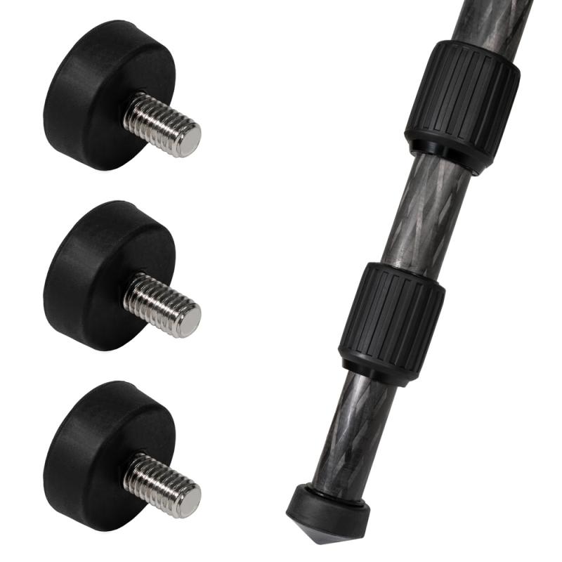 Spare set of 3 rubber feet for carbon tripods. Designed for stable placement of tripods on smooth or hard surfaces. Compatible with FARO Focus carbon tripods, quick release versions, 5/8'' thread tripods, and Leica BLK tripods. Easy to mount and replace.