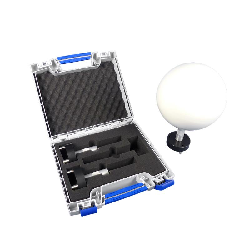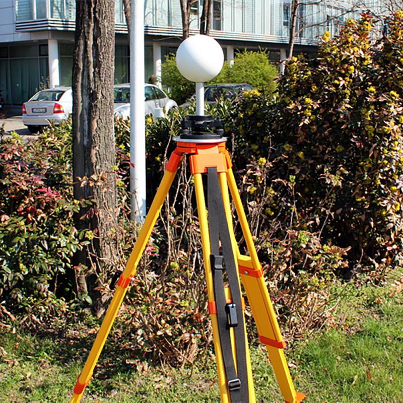 Set of 3 tripod adapters with claw system for Ø145 mm reference spheres. Sphere center positioned at 196 mm (tilting axis of Leica/Trimble total stations). Includes robust transport case with foam insert (300×275×110 mm). Ideal for creating fixed reference points, integrating ground marks into scanning projects, and placing spheres in natural environments.