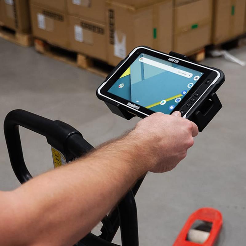 The Pallet Truck Mount (RT8-1035) by Handheld is a dedicated mounting solution for the Algiz RT8 tablet. It includes a mounting arm and cradle. Features wide mounting plates and long bolts so it fits most pallet trucks. Designed for warehouse workflows such as order picking and tracking.